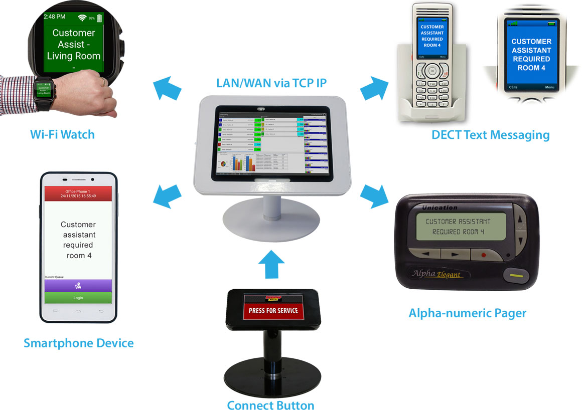 The Connect RCS can support a myriad of devices, from Pagers to DECT phones to Wi-Fi handsets and watches. The system can be customised to fit a small boutique fashion store all the way to a big box FMCG store. With versatile options this system can be customised to suit any budget, and what works best for your staff.